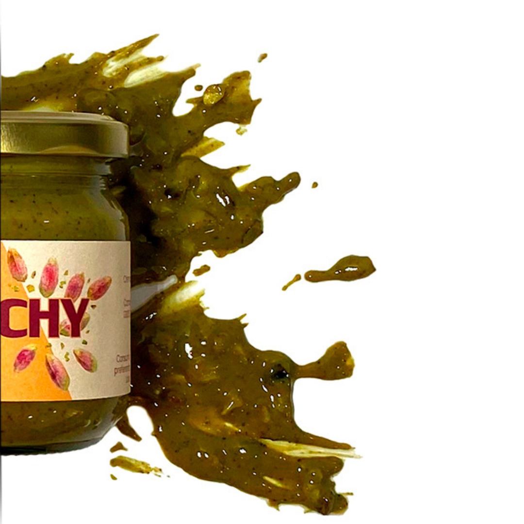 • Textura: Cremosa con trozos sólidos repartidos de manera homogénea, puede separarse la fase liquida grasa (aceite del pistacho y de girasol) después de 2 meses. Es un fenómeno perfectamente natural.